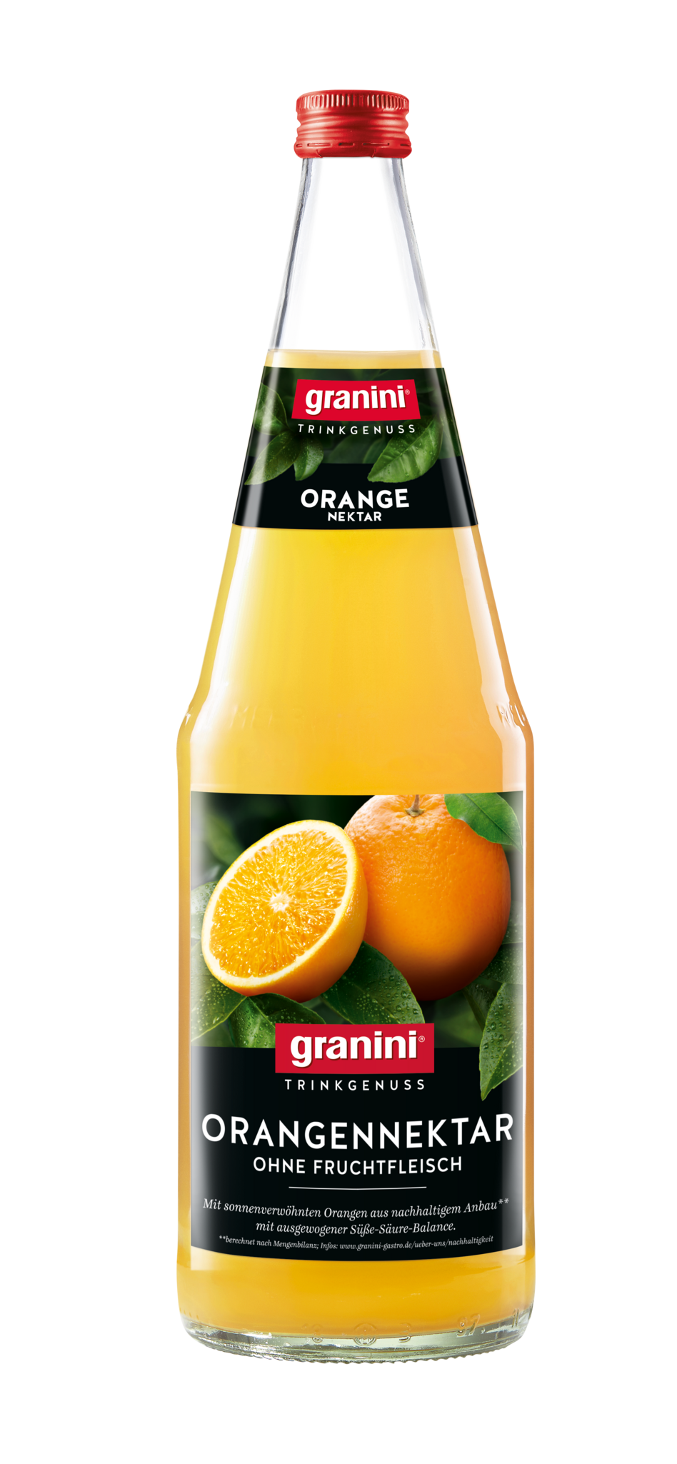 Sonnenverwöhnte Orangen aus nachhaltigem Anbau** mit ausgewogener Süße-Säure-Balance als 50 % Nektar Variante ohne Fruchtfleisch.