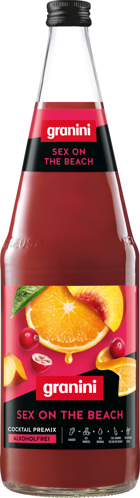 Die alkoholfreie Variation wird oft als "Safer Sex on the Beach" ausgelobt. Unter Beigabe von Vodka wird granini Cocktail Premixes Sex on the Beach zum "perfect serve" des klassischen "Sex on the Beach". Aber auch hier sind weiteren Ideen keine Grenzen gesetzt.