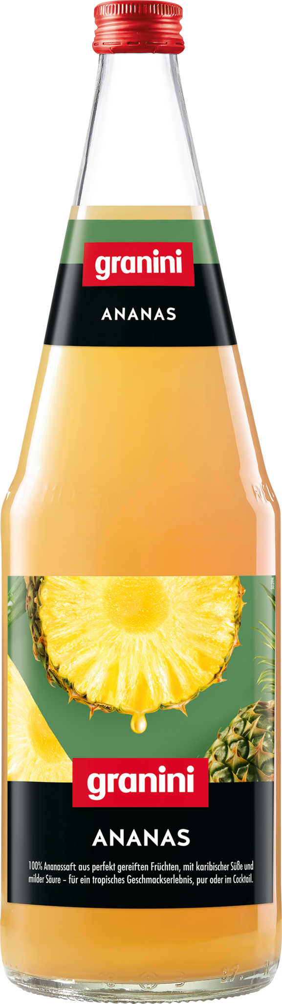 100% Ananassaft aus perfekt gereiften Früchten, mit karibischer Süße und milder Säure – für ein tropisches Geschmackserlebnis, pur oder im Cocktail.