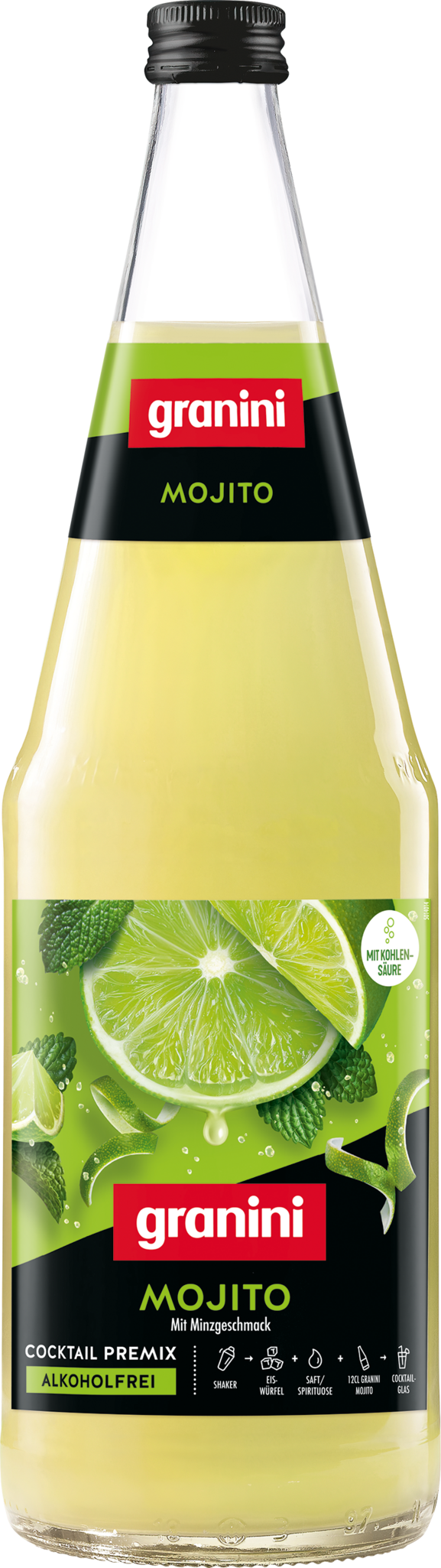 Granini Cocktail Premixes Mojito ist die karbonisierte Basis zur schnellen und konstanten Zubereitung eines Mojitos. Das Ergebnis: ein erfrischender Drink mit intensiver Fruchtigkeit und perfekter Balance zwischen Limette und Minze.